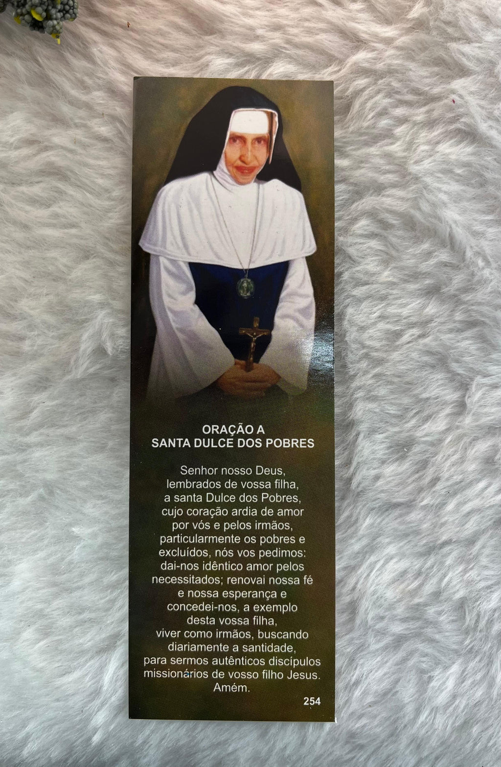 "Marca página de papel com imagem de Santa Dulce dos Pobres. Ideal para acompanhar leituras, orações e oferecer como lembrancinha em ocasiões religiosas. Produto leve, prático e cheio de significado espiritual."