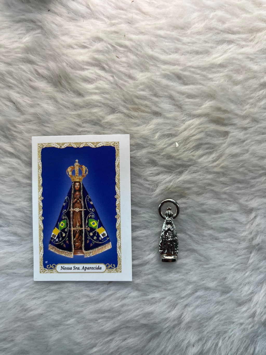 "Imagem de bolso com oração de Nossa Senhora Aparecida, prática para carregar consigo, ideal para momentos de fé e devoção."