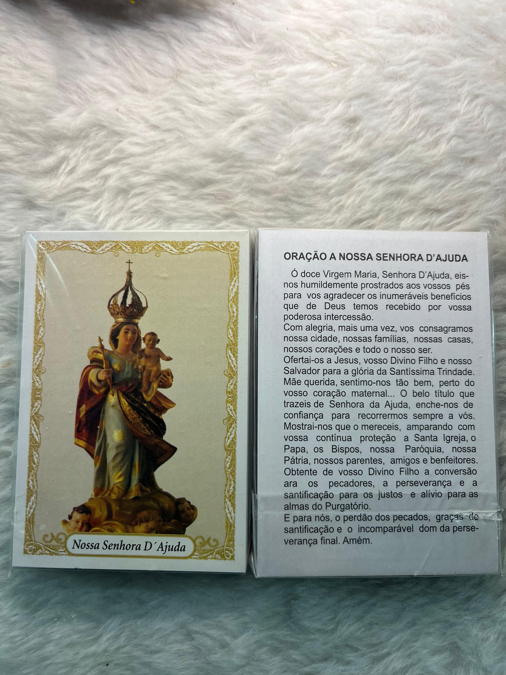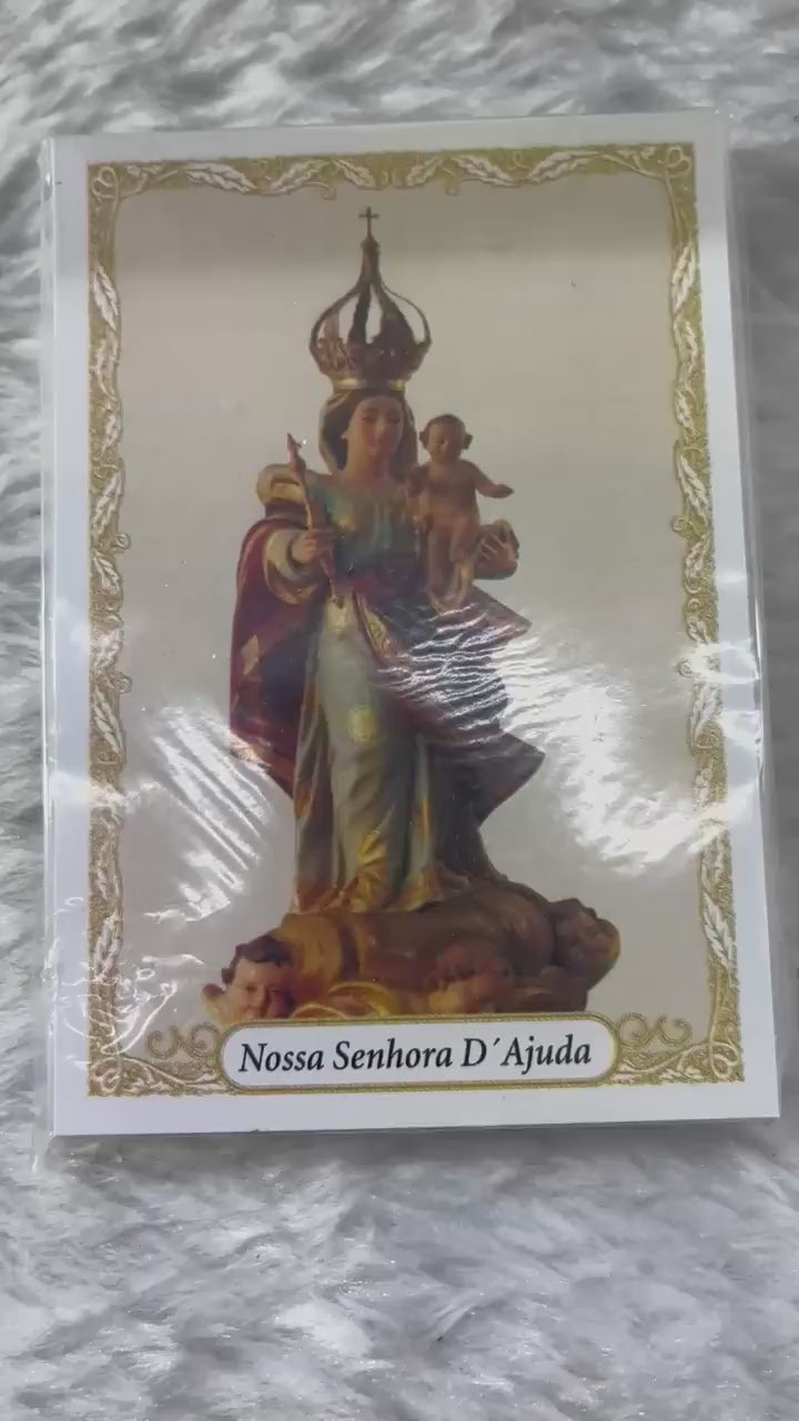 Inspire-se na fé com o pacote de 100 santinhos de papel de NOSSA SENHORA D'AJUDA! Cada santinho contém uma oração de ajuda para fortalecer sua devoção e trazer bênçãos à sua vida. Um tesouro para seus momentos de oração e devoção. Peça já o seu!