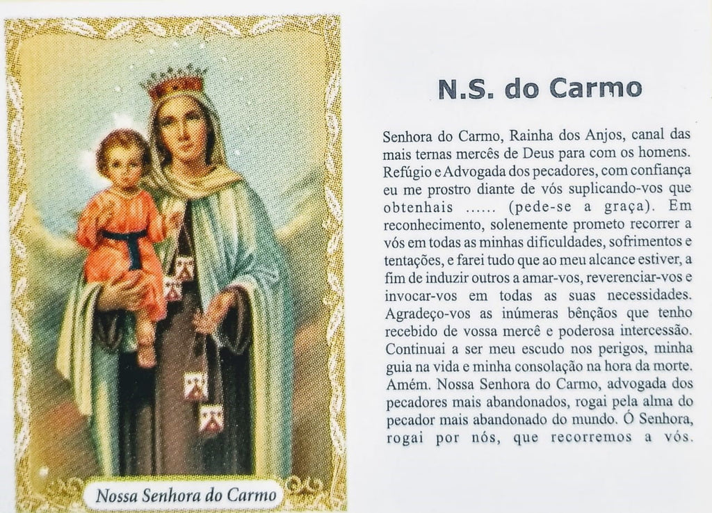 O Santinho de papel da Nossa Senhora do Carmo é comum entre os católicos como forma de agradecimento de alguma graça alcançada.