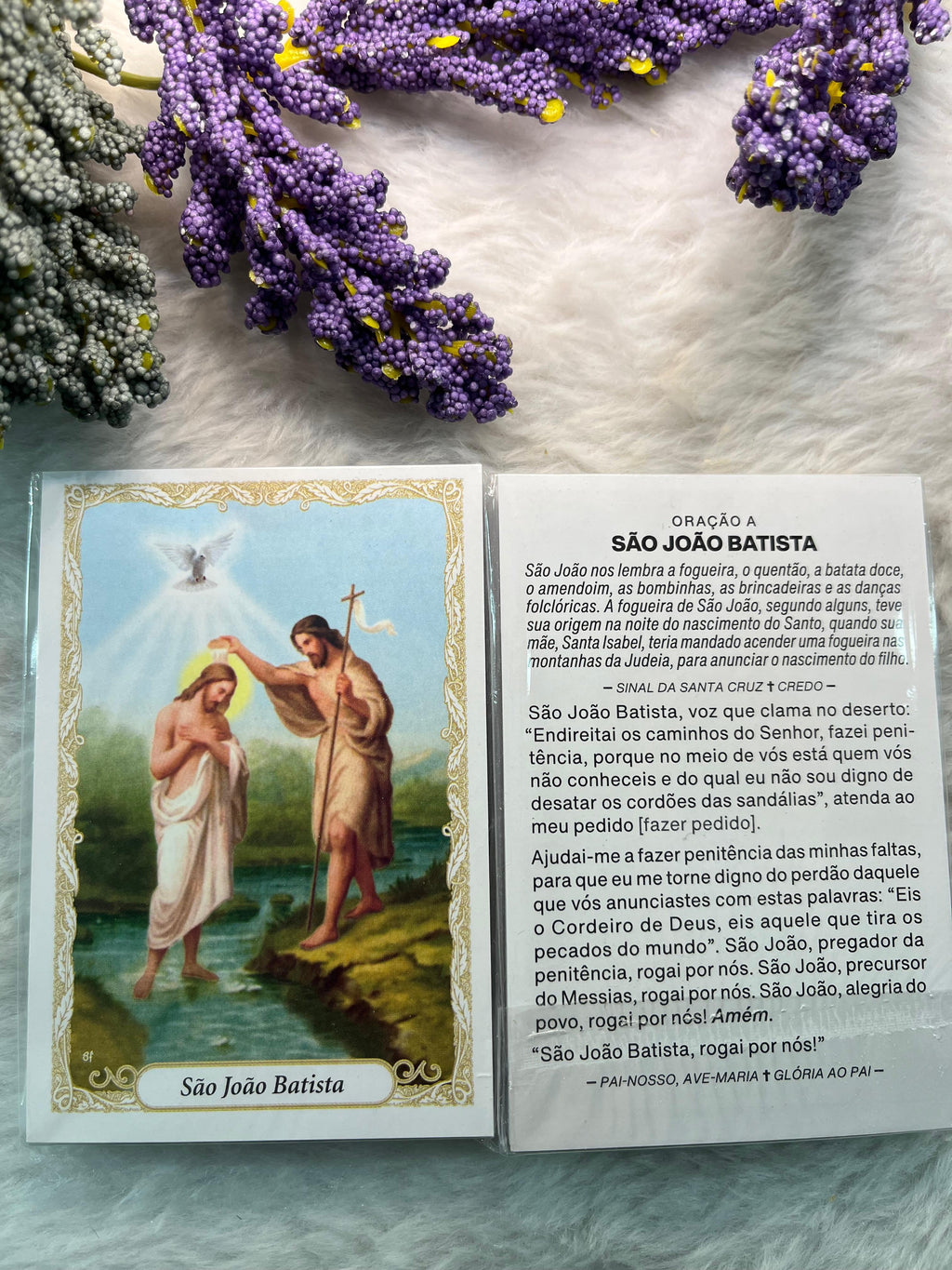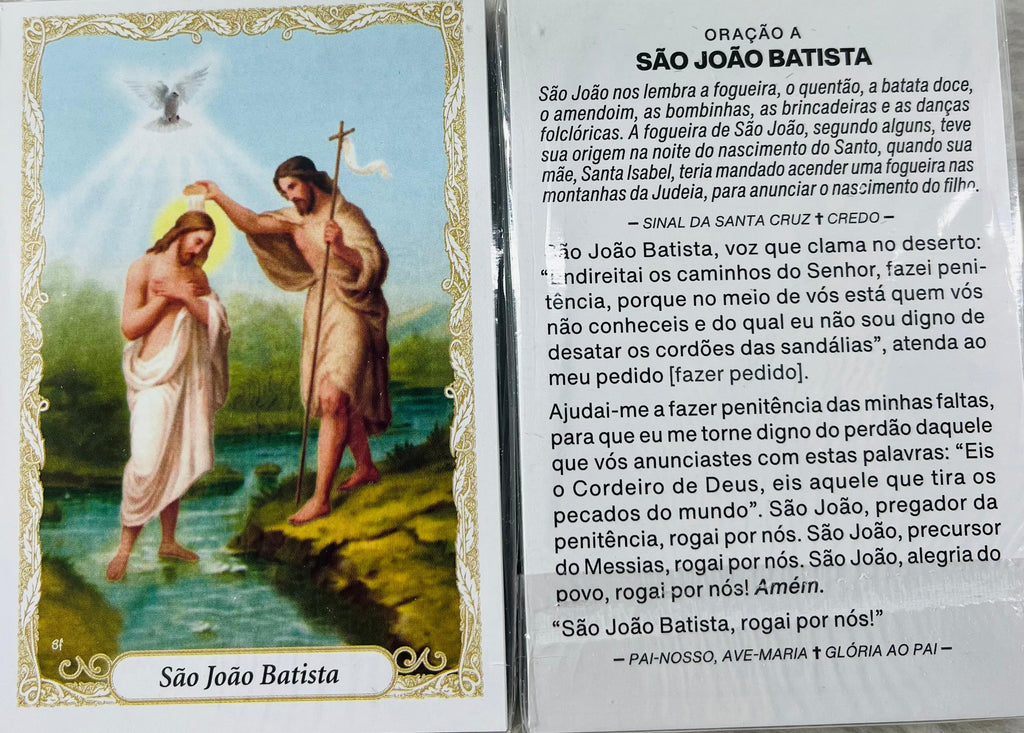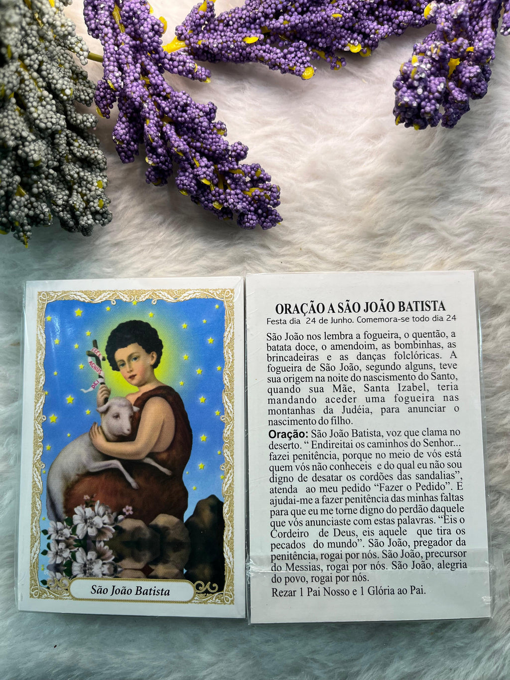 Expresse sua devoção com o santinho de São João Batista, profeta e precursor de Cristo, símbolo de fé, humildade e preparação espiritual. Ideal para lembrancinhas de missas, novenas, encontros de oração, festas juninas religiosas e distribuição em comunidades.